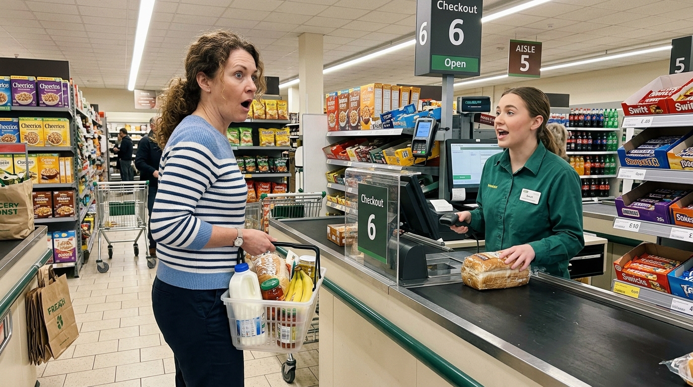 Kassapidaja ei märganud, et olin hingamise lõpetanud. Ta skaneeris esemeid, vaadates ekraani, mitte minu nägu.