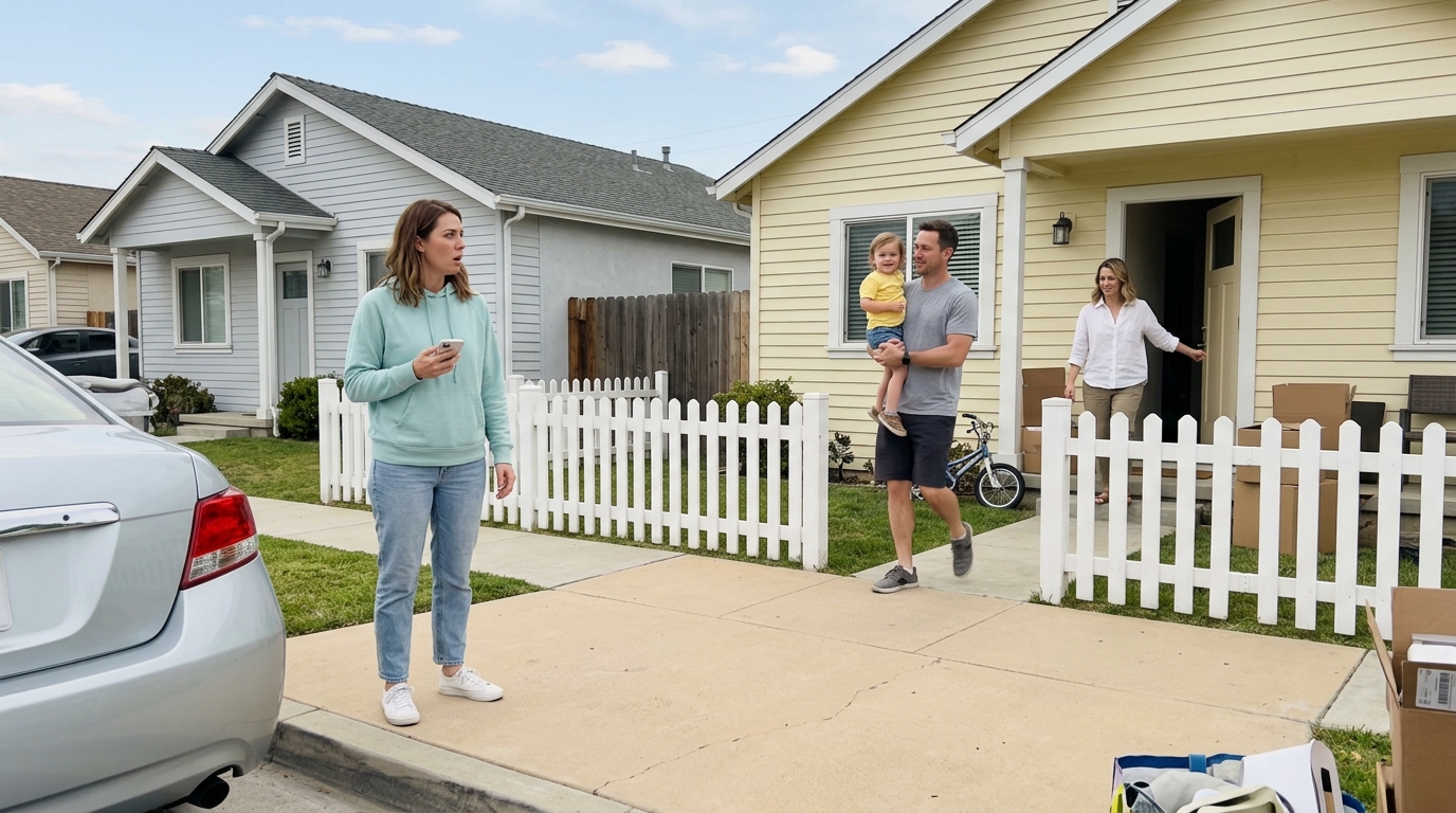 Noor pere kolis korterisse minu kõrval. Tumeda juustega naine juhendas kolijaid märkmetahvliga. Väike tüdruk, umbes kaheksateist kuud vana, liikus ringi roosa pehme jänku käes.