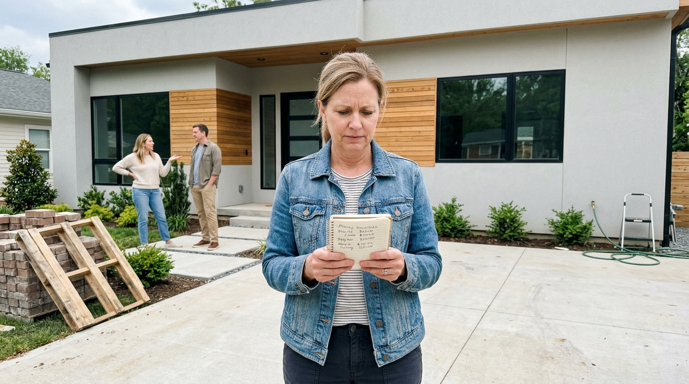 Ta alustas ehitamisega neli aastat tagasi. Naise vanemad andsid neile maatüki — kena koht, vaikne, küla serval. Nad valisid kavandi kataloogist: kaks korrust, kahekordne garaaž, aed. Gregory teenis teel olles hästi, aga ehitus on põhjatu kaev. Kõik teavad seda.
